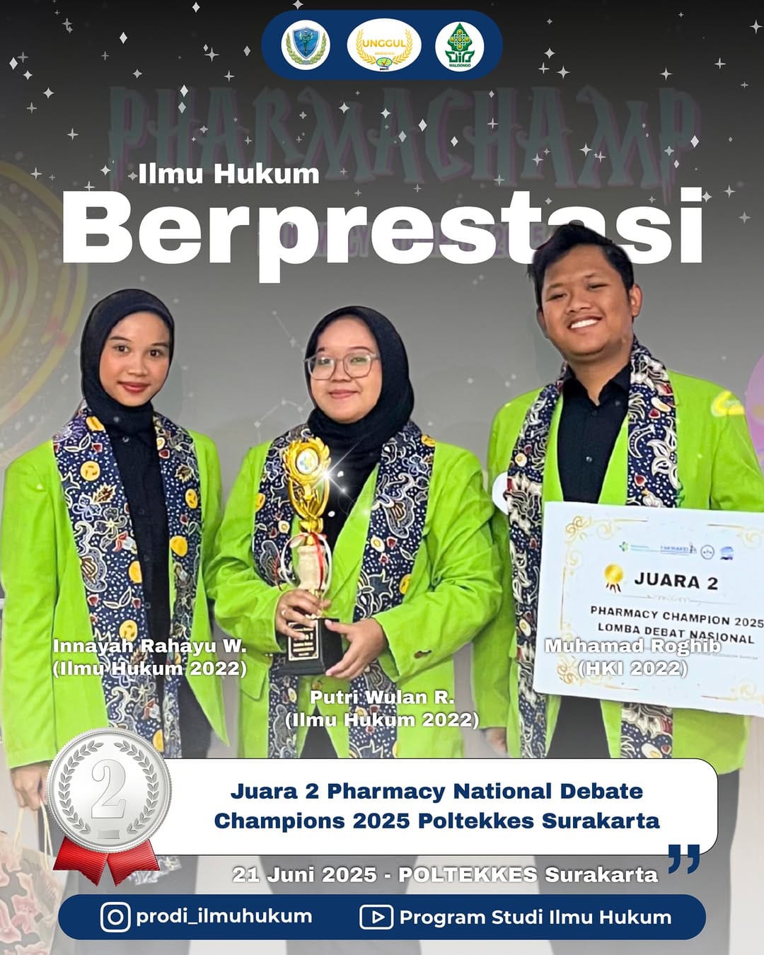 Berikut adalah dokumentasi kejuaraan yang diikuti oleh mahasiswa PS Ilmu Hukum:
